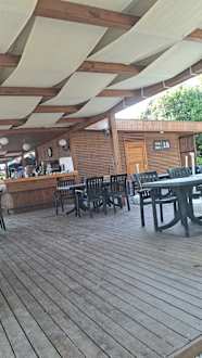 Beachbar und dahinter steht der Achmed.