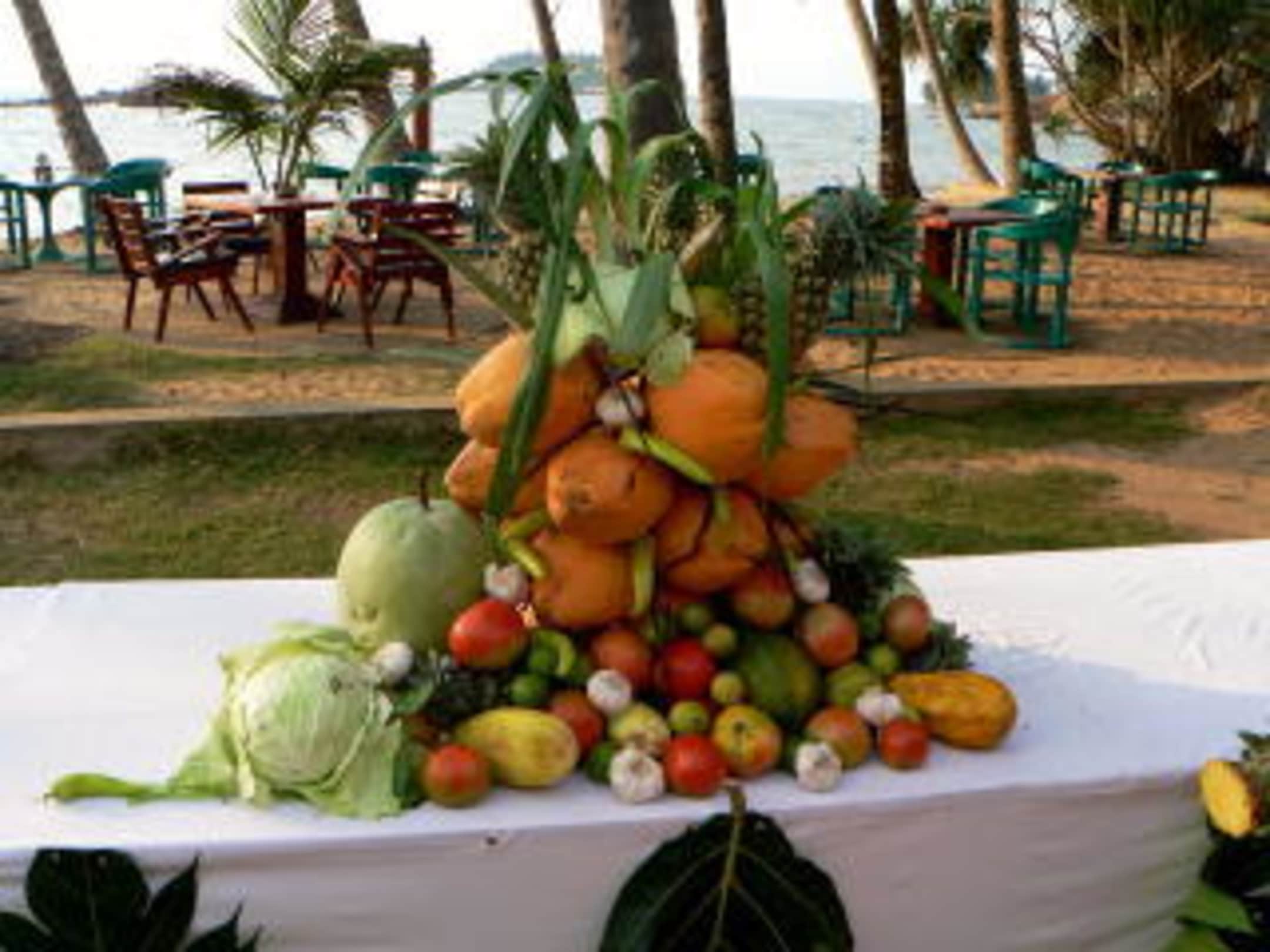 Obstkorb vor Außenbereich