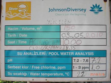 Wasserqualität stimmtJeder Pool hat so eine Tafel an der man immer die Wasserqualität ablesen kann. Diese wird täglich überprüft!