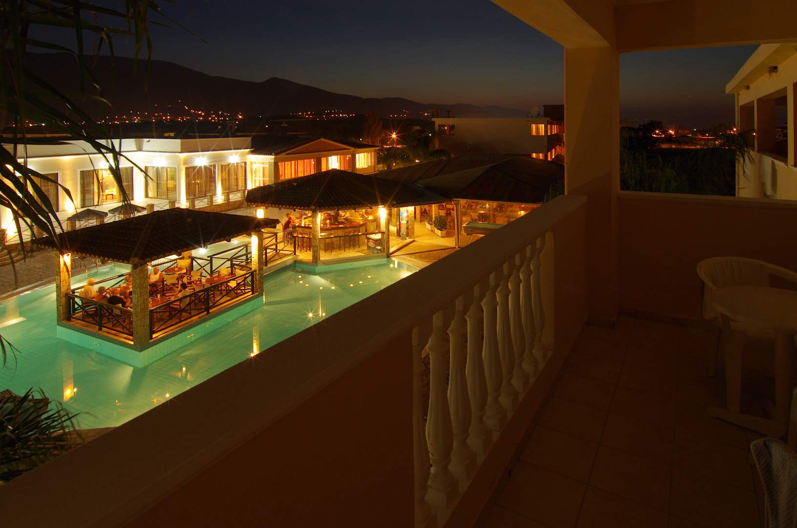 Zimmerausblick am Abend -Balkon