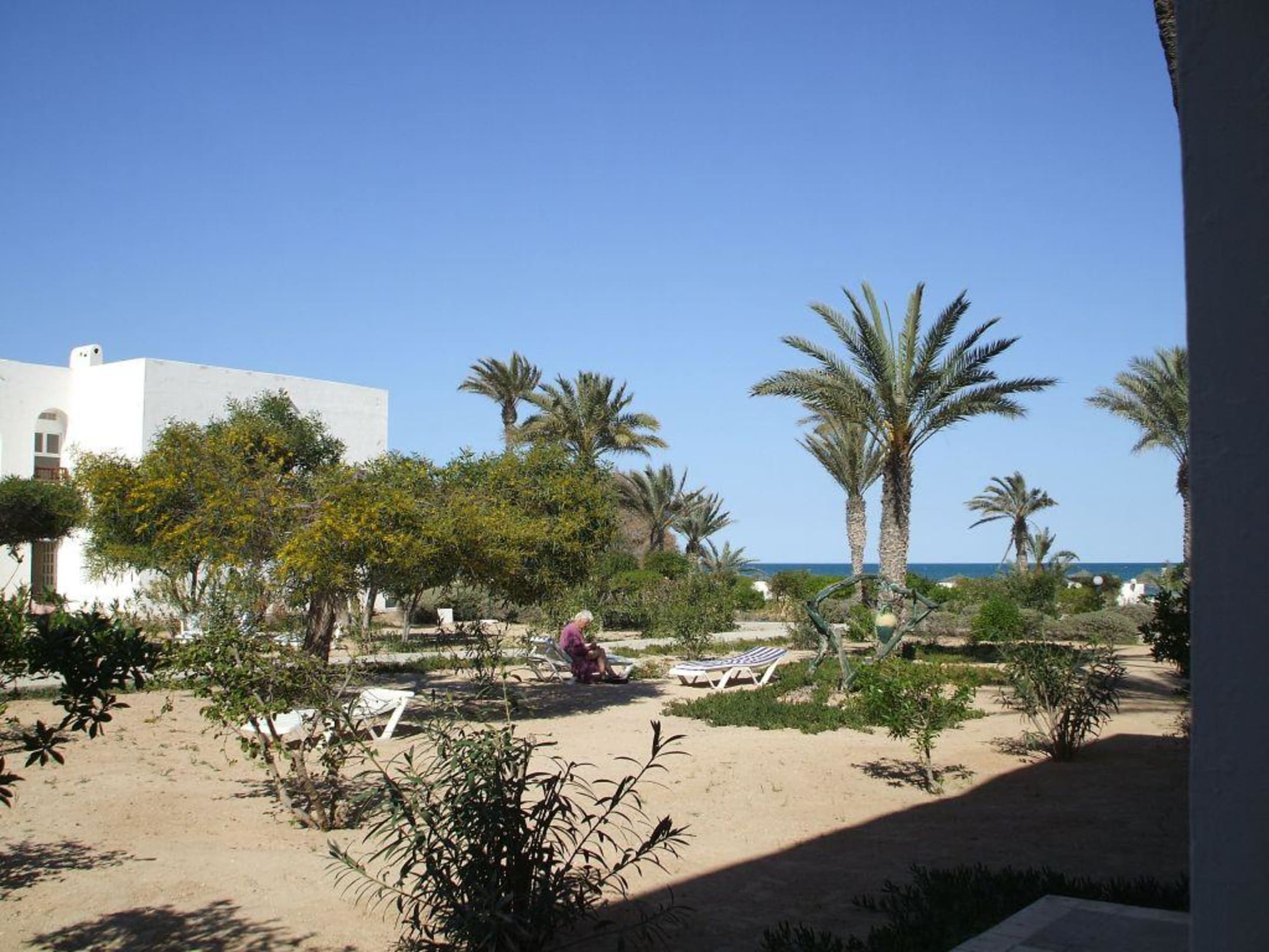 gartenanlage in hotel zarzis in zarzis-djerba tunesien mit blick aufs meer.