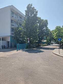 Außenansicht mit Gaststätte für Hotelgäste