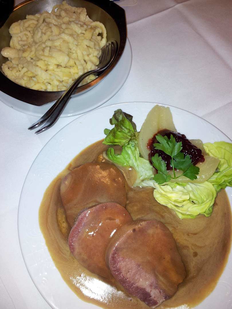Selbstgemachte Spätzle sehr gut, Rinderzunge gut