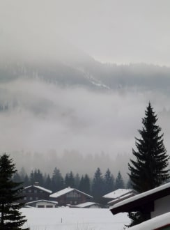 "guten Morgen" Blick auf nebenverhangene Berge