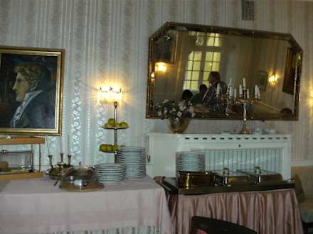 Dort steht das Frühstücksbufett.