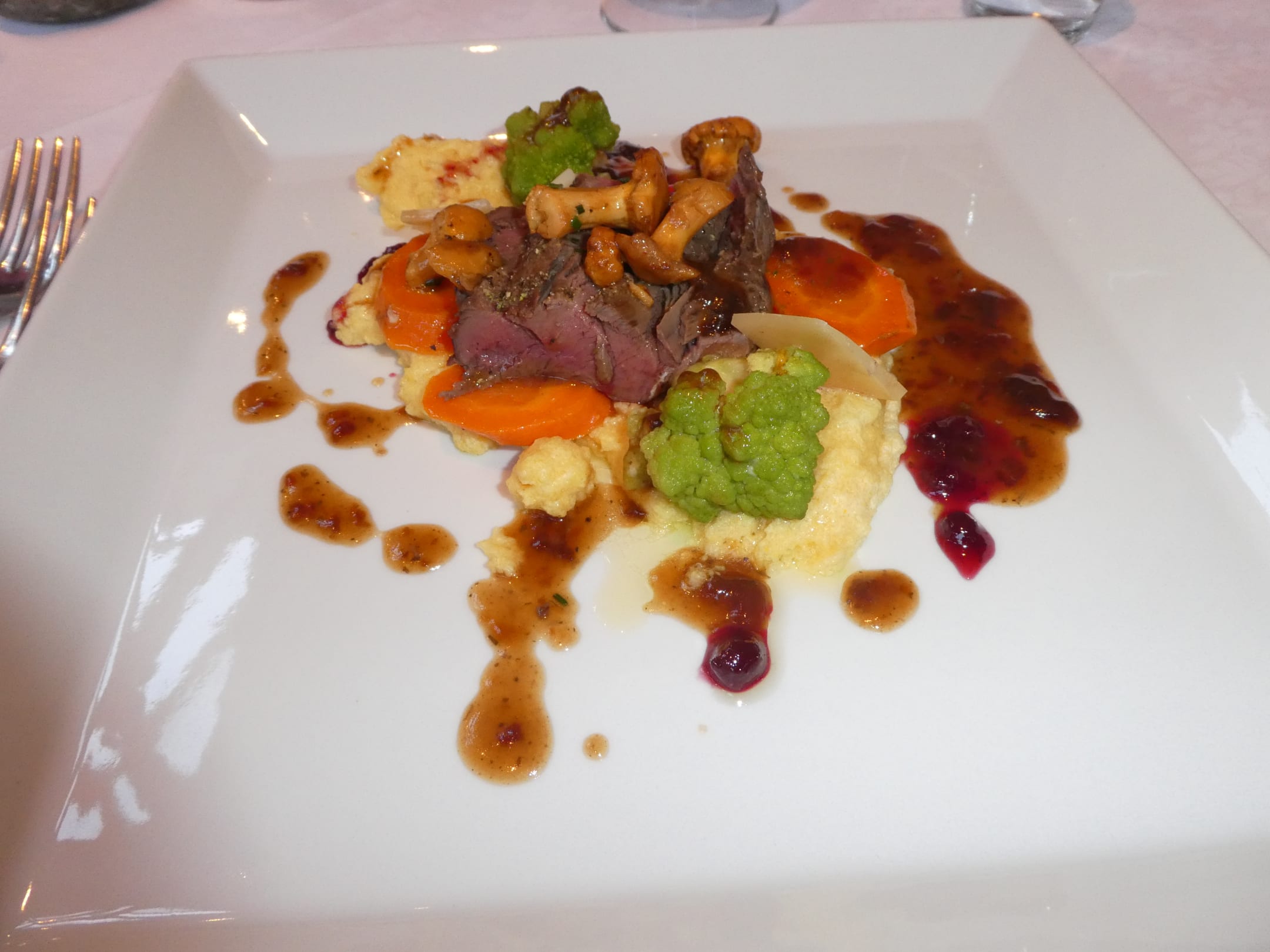 Rehrücken mit Polenta, Pfifferlingen, Almkäse und Gartengemüse