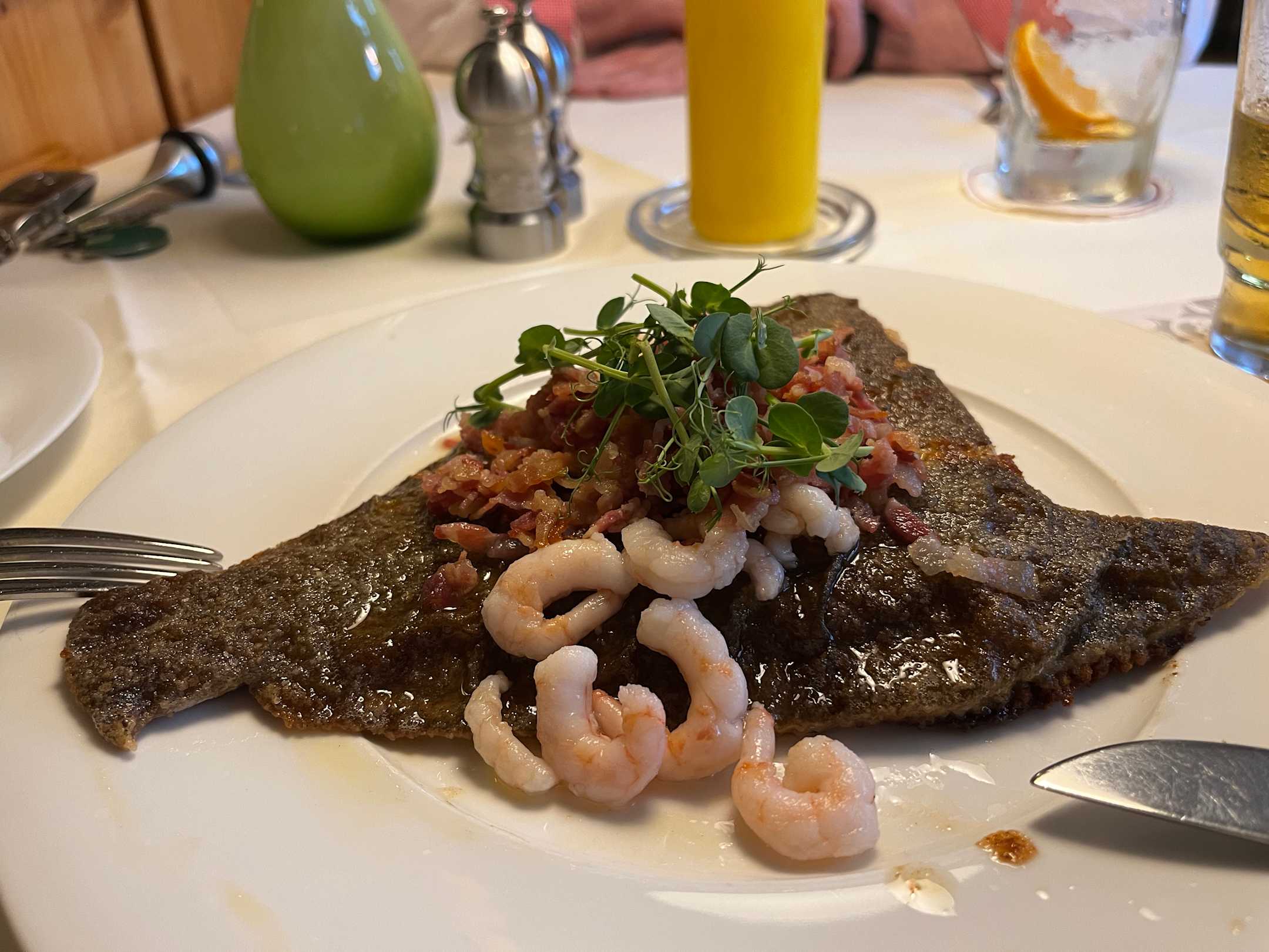 Leckere Scholle mit Speck und Krabben