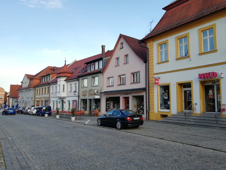 Die Nachbarschaft des Hotels (links mit Fahne Hotelfassade)