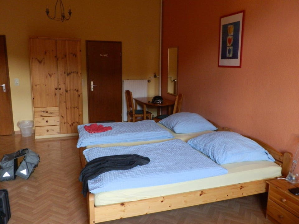 Geräumiges Zimmer (109 ?) mit 5 Betten, wurde von uns als DZ genutzt. Schöne Kiefernmöbel, gute Matrazen, alles einfach, aber dennoch gut.
