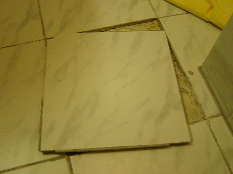 BadFußbodenfließen waren locker.