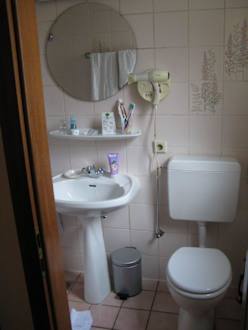 łazienka w pokoju hotelowym; umywalka z kibelkiem.