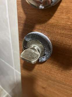 Türverriegelung innen vom Bad. Ekelhaft