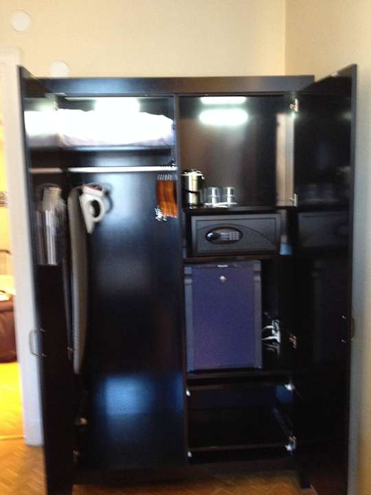 Schrank mit Safe, Bügeleisen und -brett, Minibar