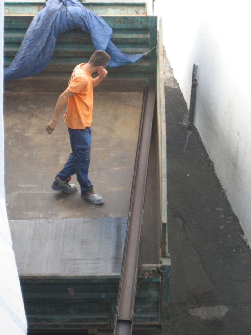 Diese Stahlplatte wird vom LKW gestoßen.