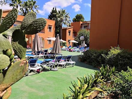 Blick von der Terrasse auf den Pool