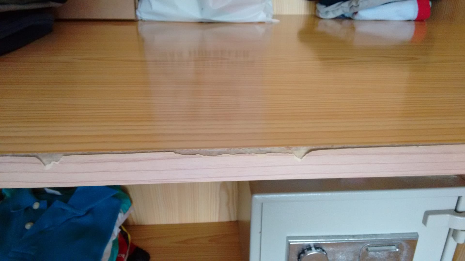 ZimmerBeschädigter Enlageboden an dem man mit der Kleidung hängen bleiben kann.
