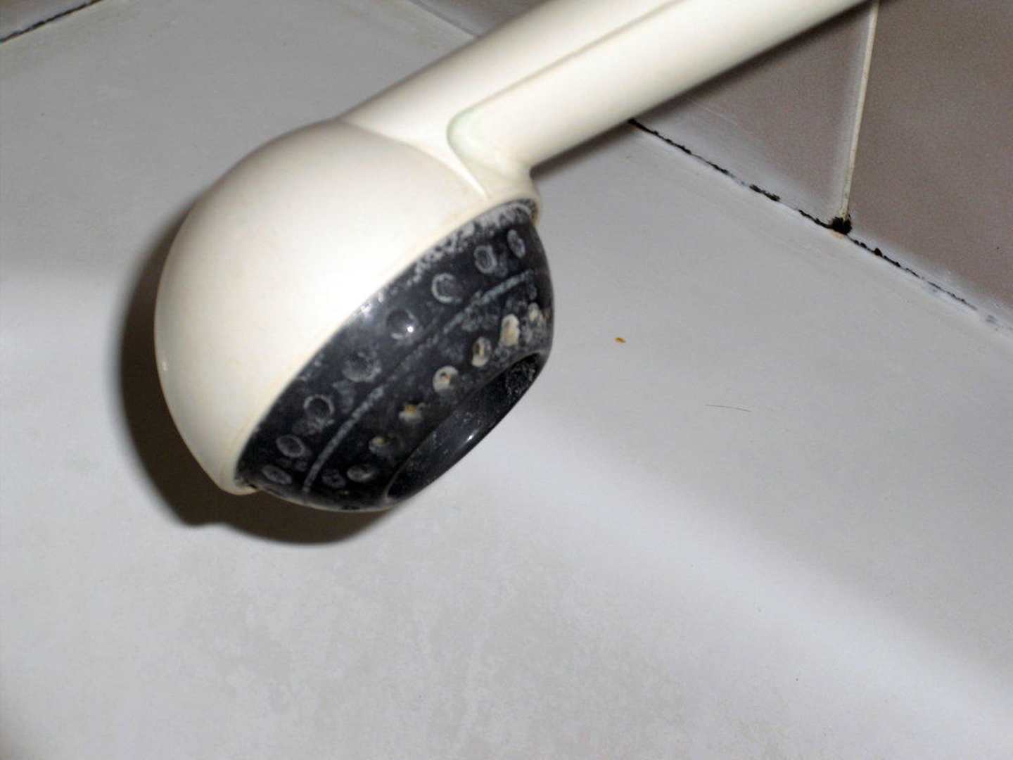 Versiffter Duschkopf im Badezimmer