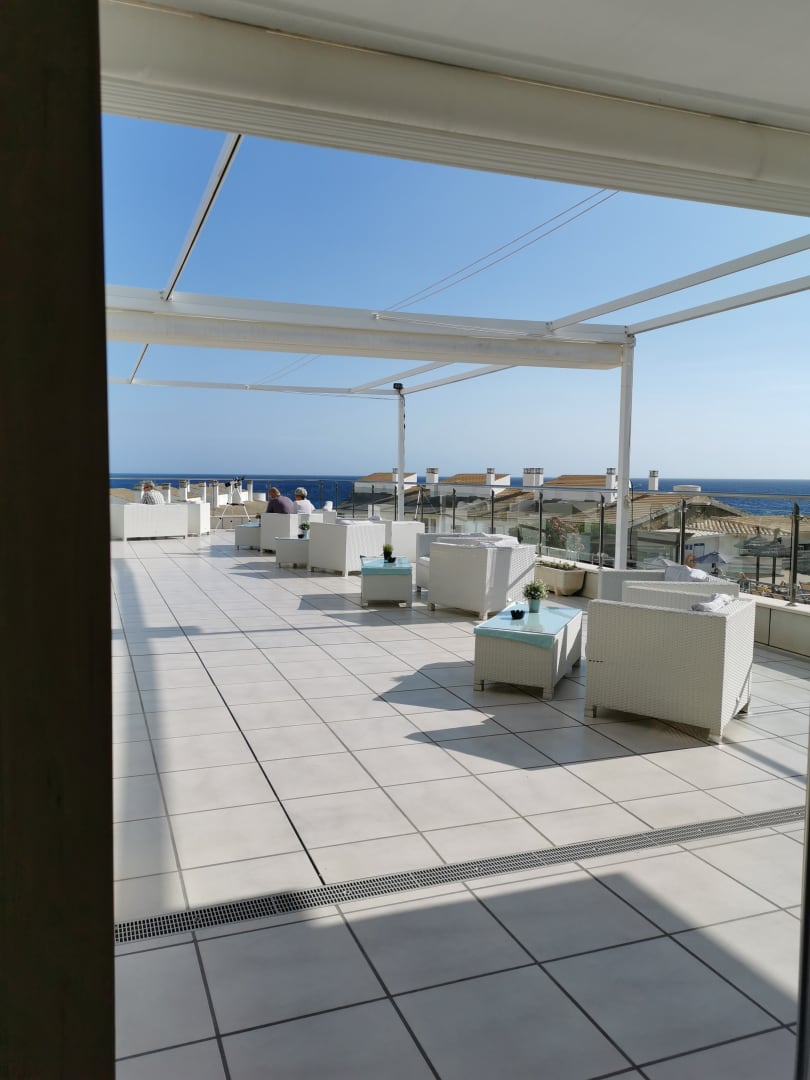 Dachterrasse mit Sicht auf Cala Agulla