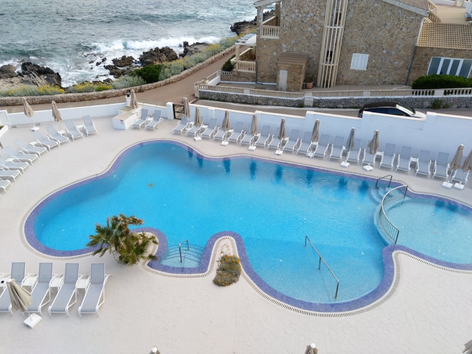 Pool von der Frühstücksterasse aus gesehen.