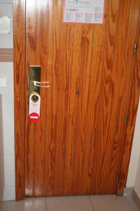 Die Zimmertüre ist genauso unmodern wie die übrige Einrichtung (Einbauschräne etc.)