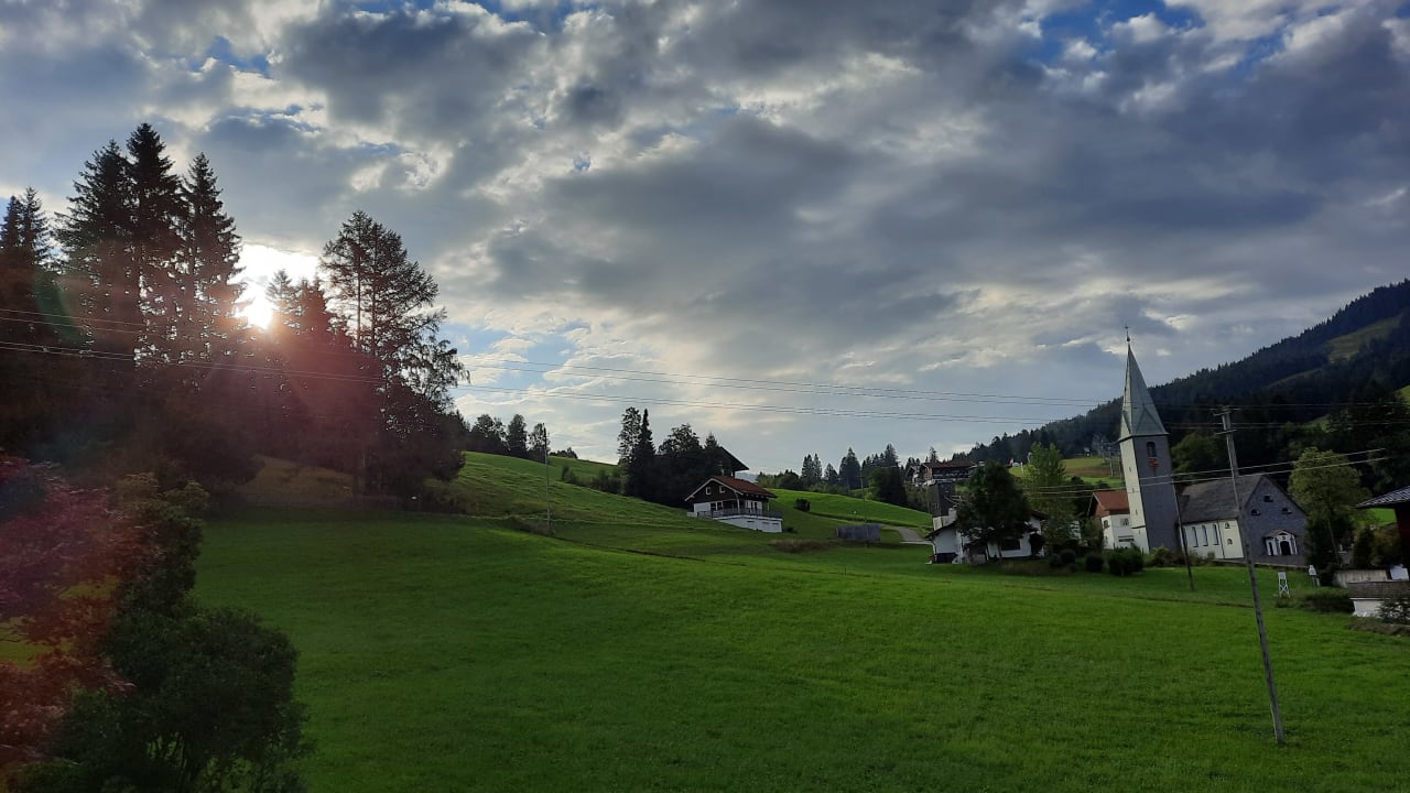 Blick vom Balkon in die Morgensonne.