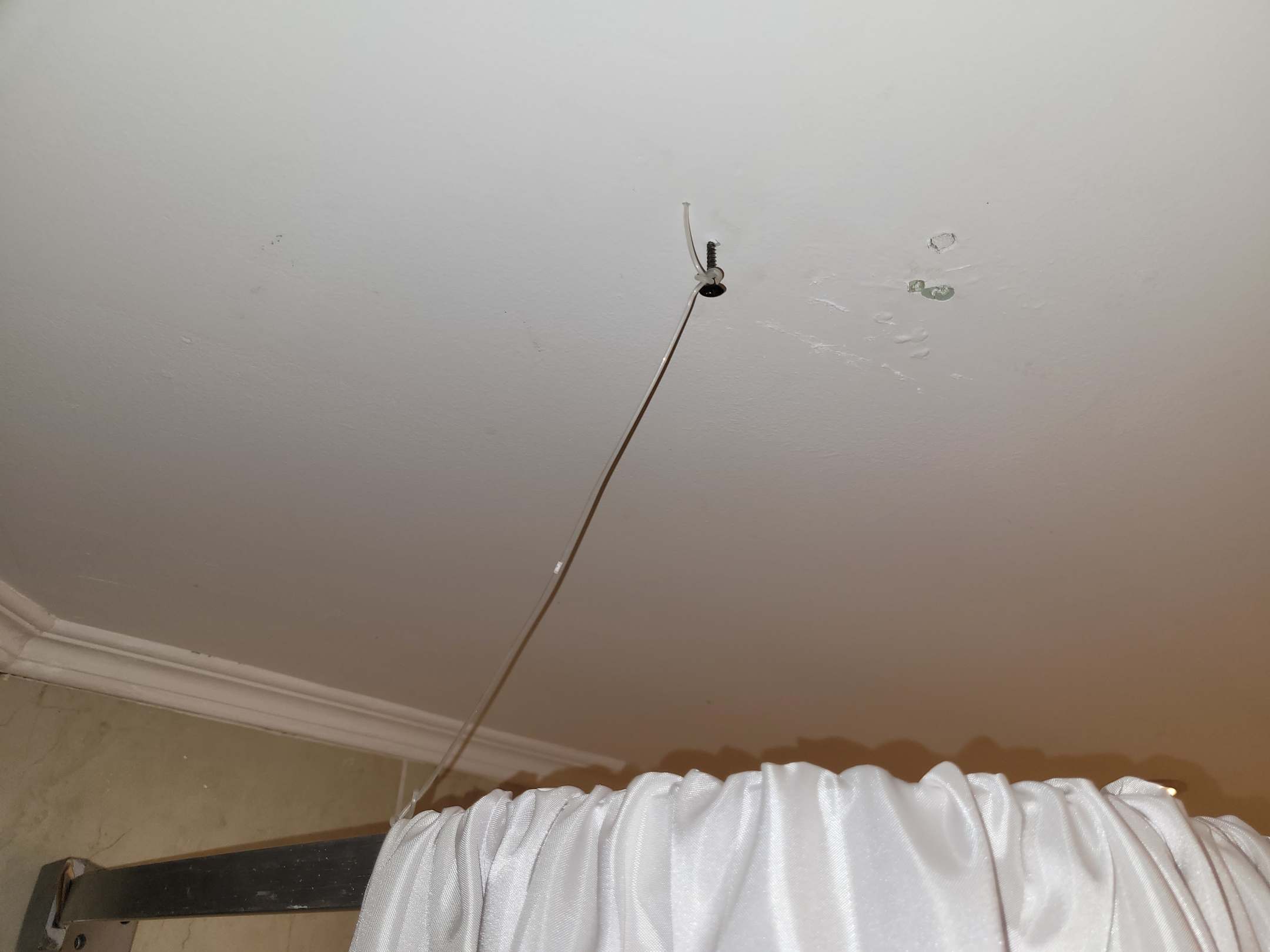 Die Duschstange mit Draht und einer Schraube "befestigt"