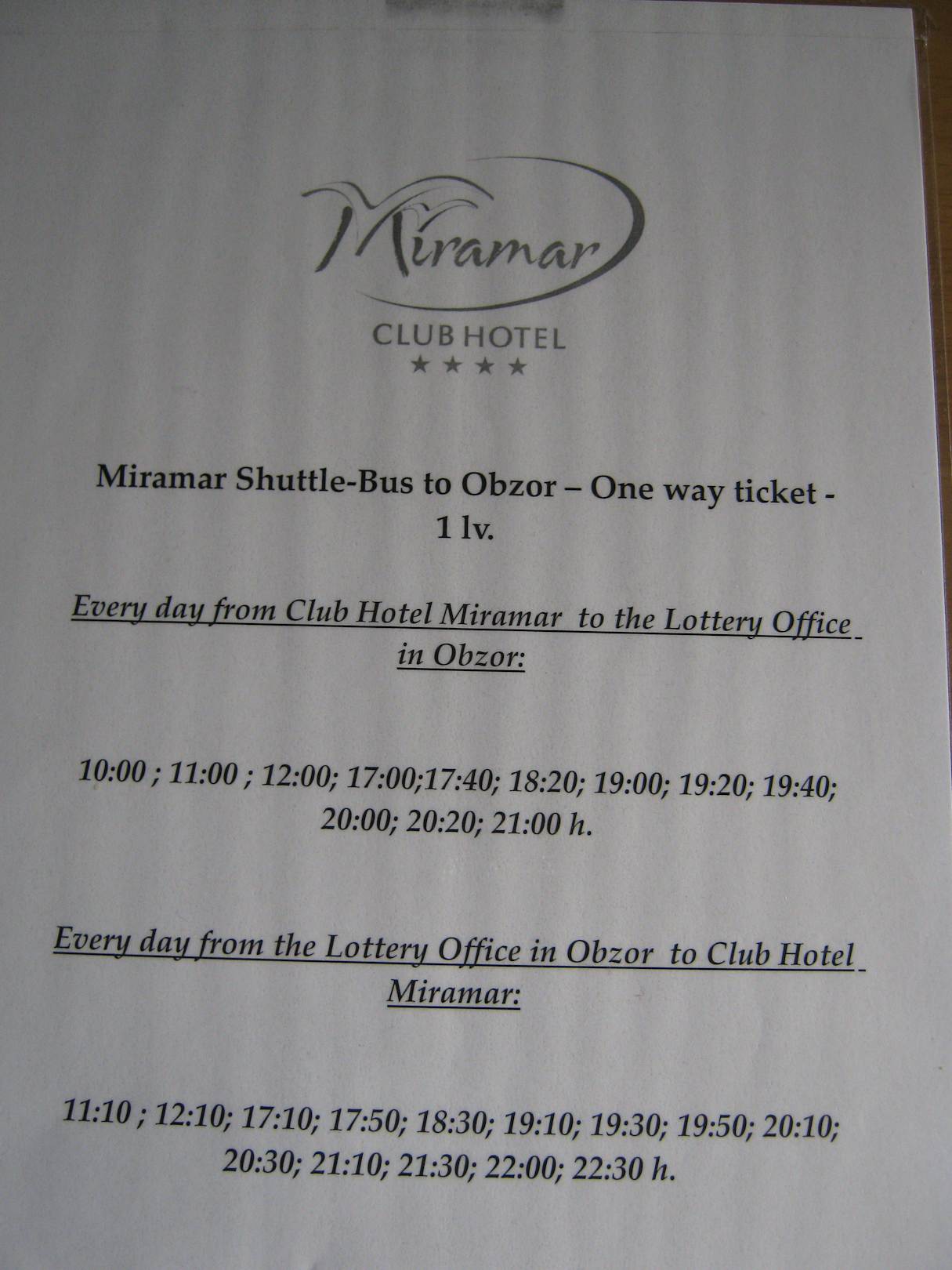 Der Fahrplan vom Hotel-Shuttlebus