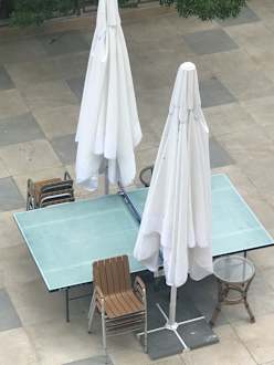 Sport & FreizeitTischtennisplatte beim Miniclub und Volleyballfeld auf dem Vordach Treppenaufgang
