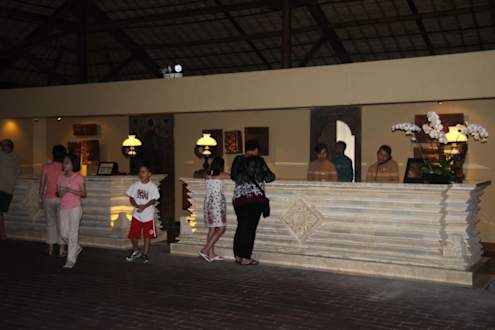 LobbytresenCeck-In, Begrüßung und Geldwechseln sowie rechts daneben ist ein Postschalter