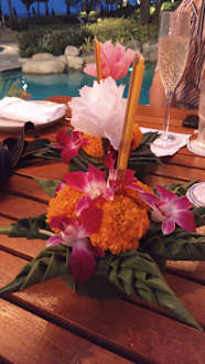 Krathong Zeremonie im You & me. Die Krathong's, also das Blumengesteck werden zum Lichterfest am 1. Vollmond im November zu Wasser gelassen; symbolisch schwimmen die Sorgen davon und so wird ein hoffnungsvoller Neuanfang markiert.
