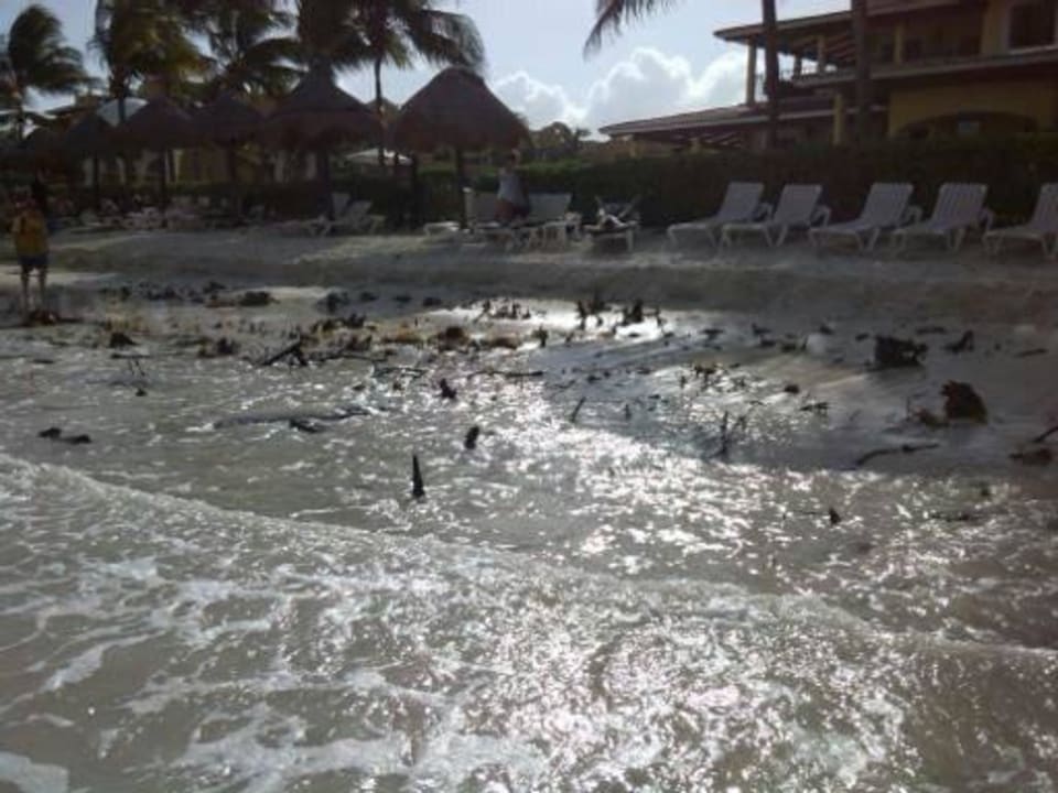 Im Wasser, Beton, Pfähle, Holzsplitter etc.