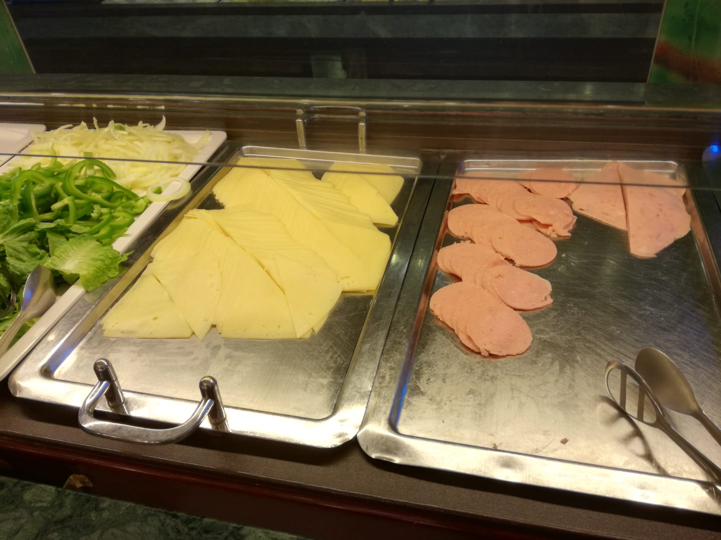 Auswahl am Käse und Wurst am Frühstücksbuffet