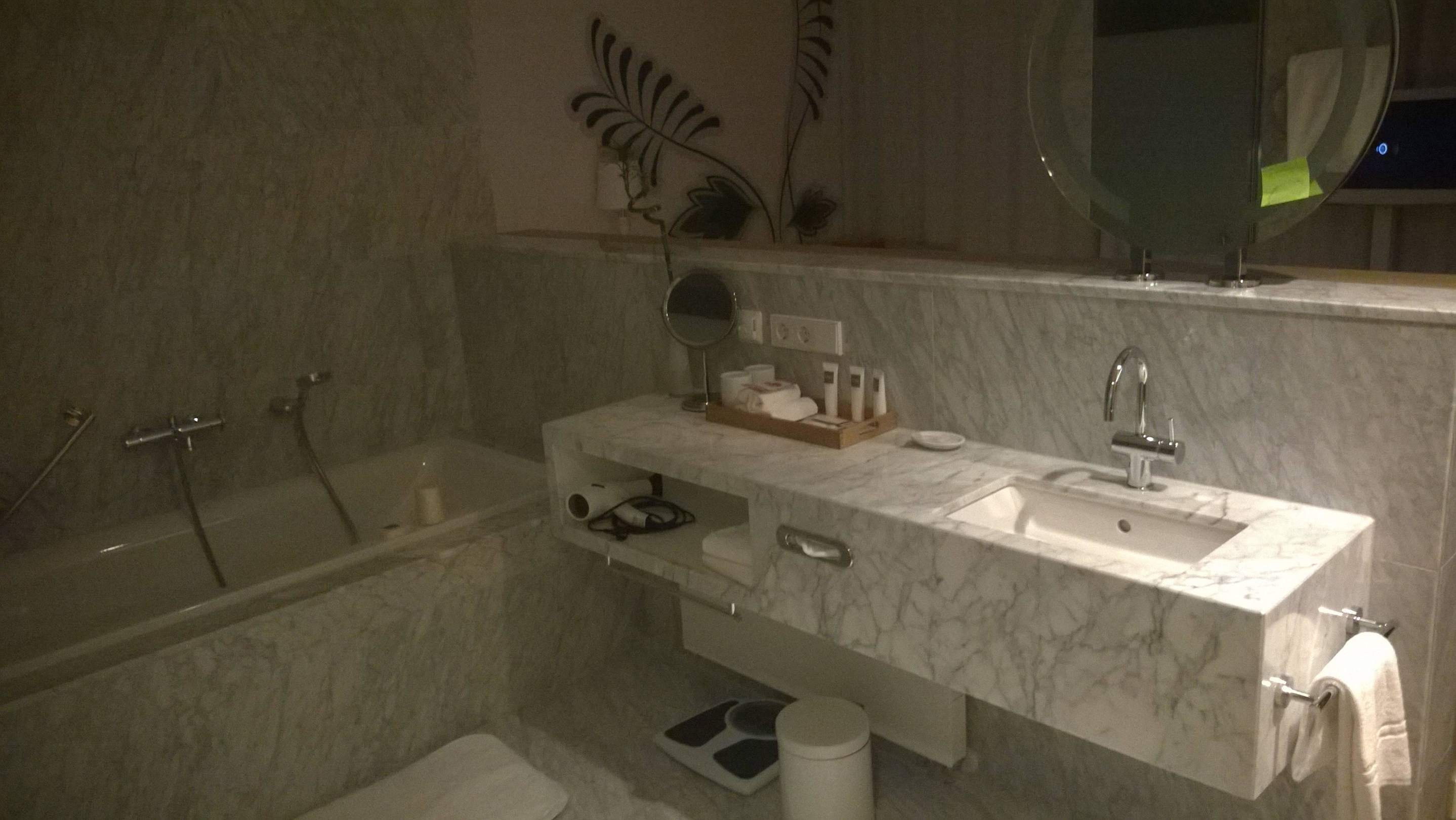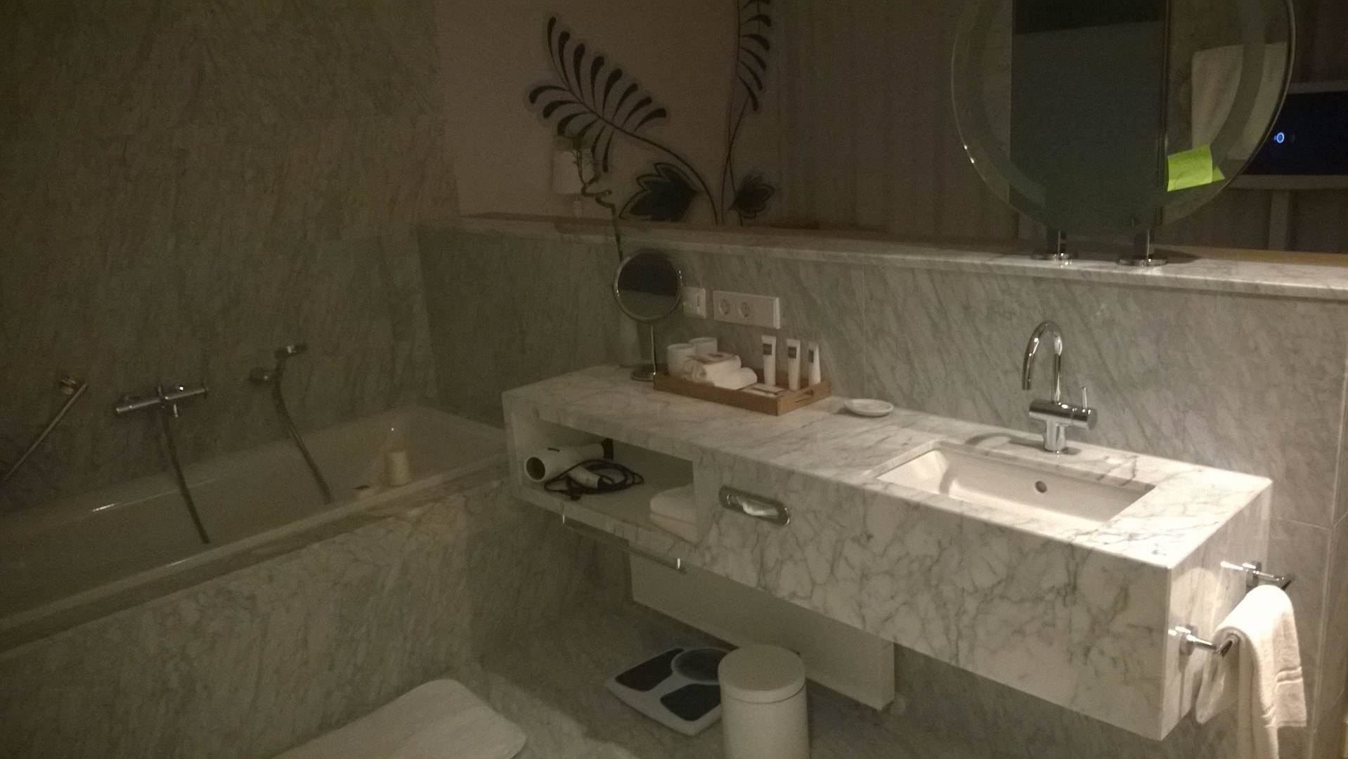 Badewanne und Waschbecken im Zimmer