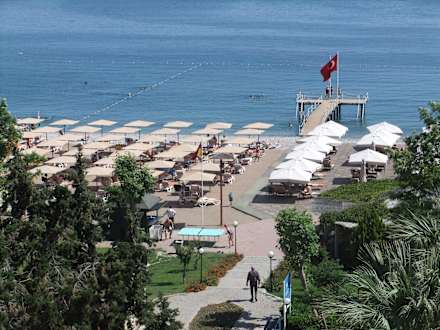 Ausblick zum Strand von der Dachterrasse İmperial Turkiz Resort Hotel
