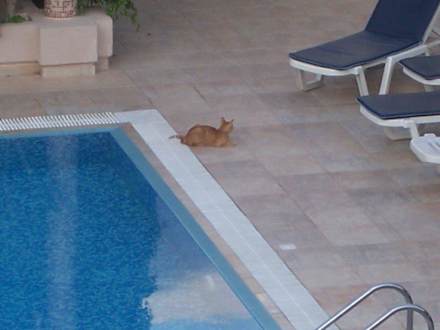 Katze am Pool