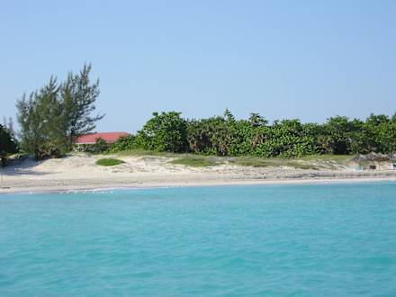 Blick vom Katamaran auf den Strandabschnitt
