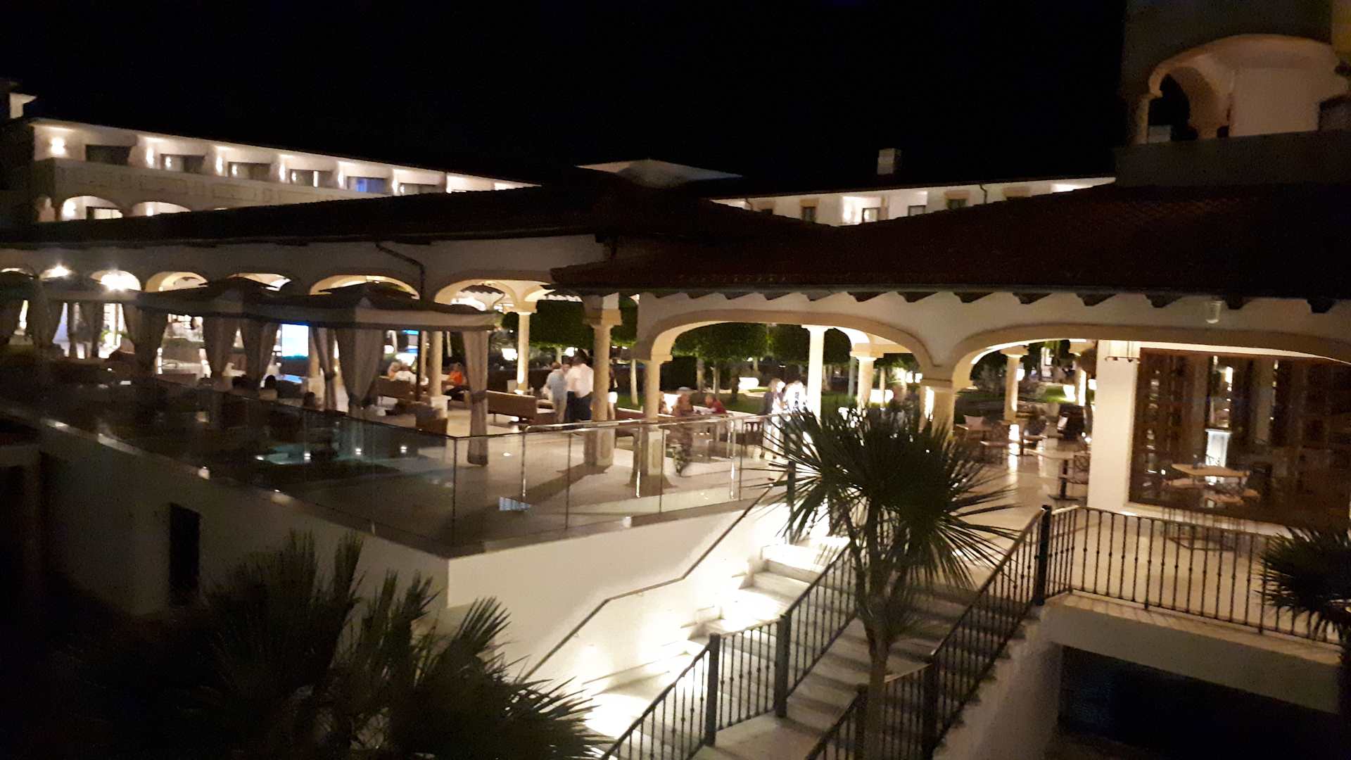Blick aus dem Zimmer im ersten Stock Richtung Restaurant