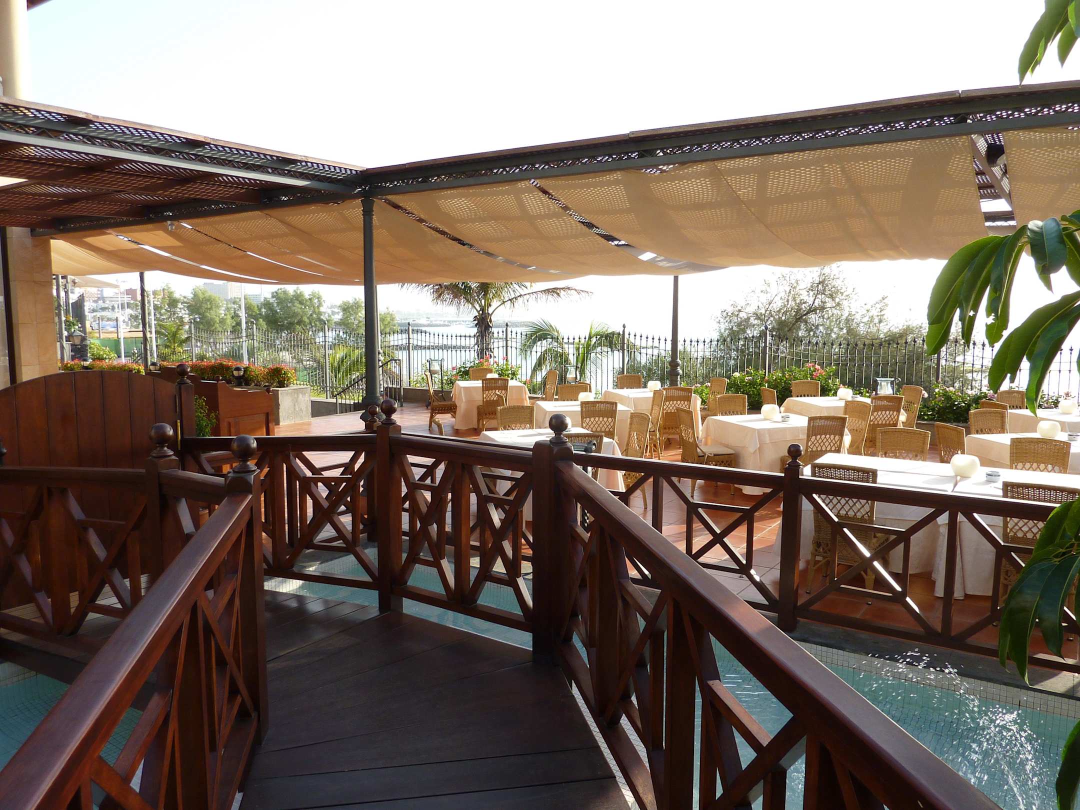 Blick vom Restaurantaußenbereich auf das Meer