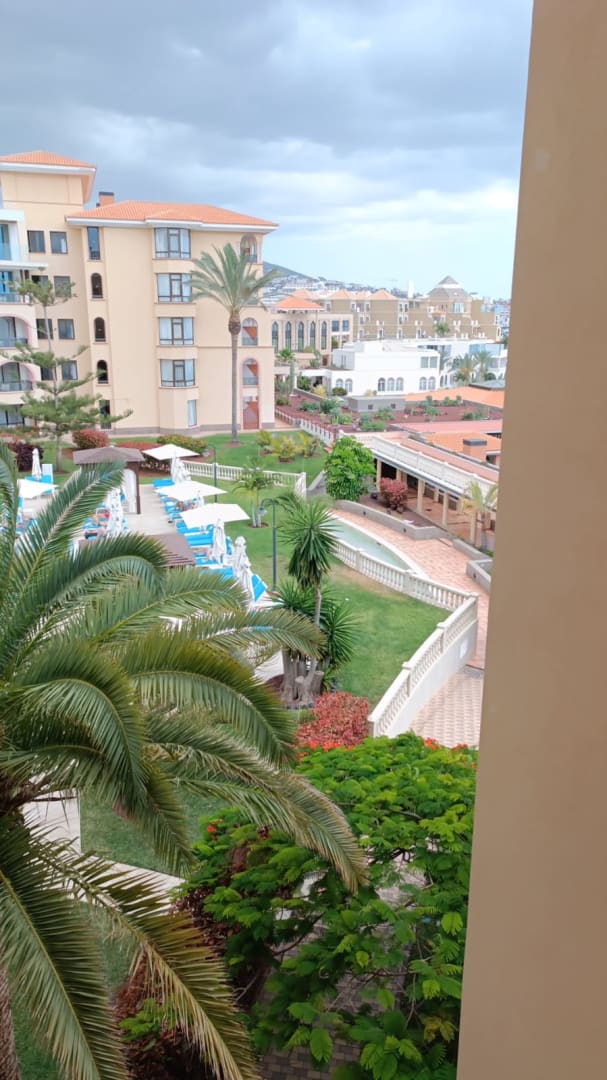 Blick von Haus 3 (3. Etage) auf einen Pool
