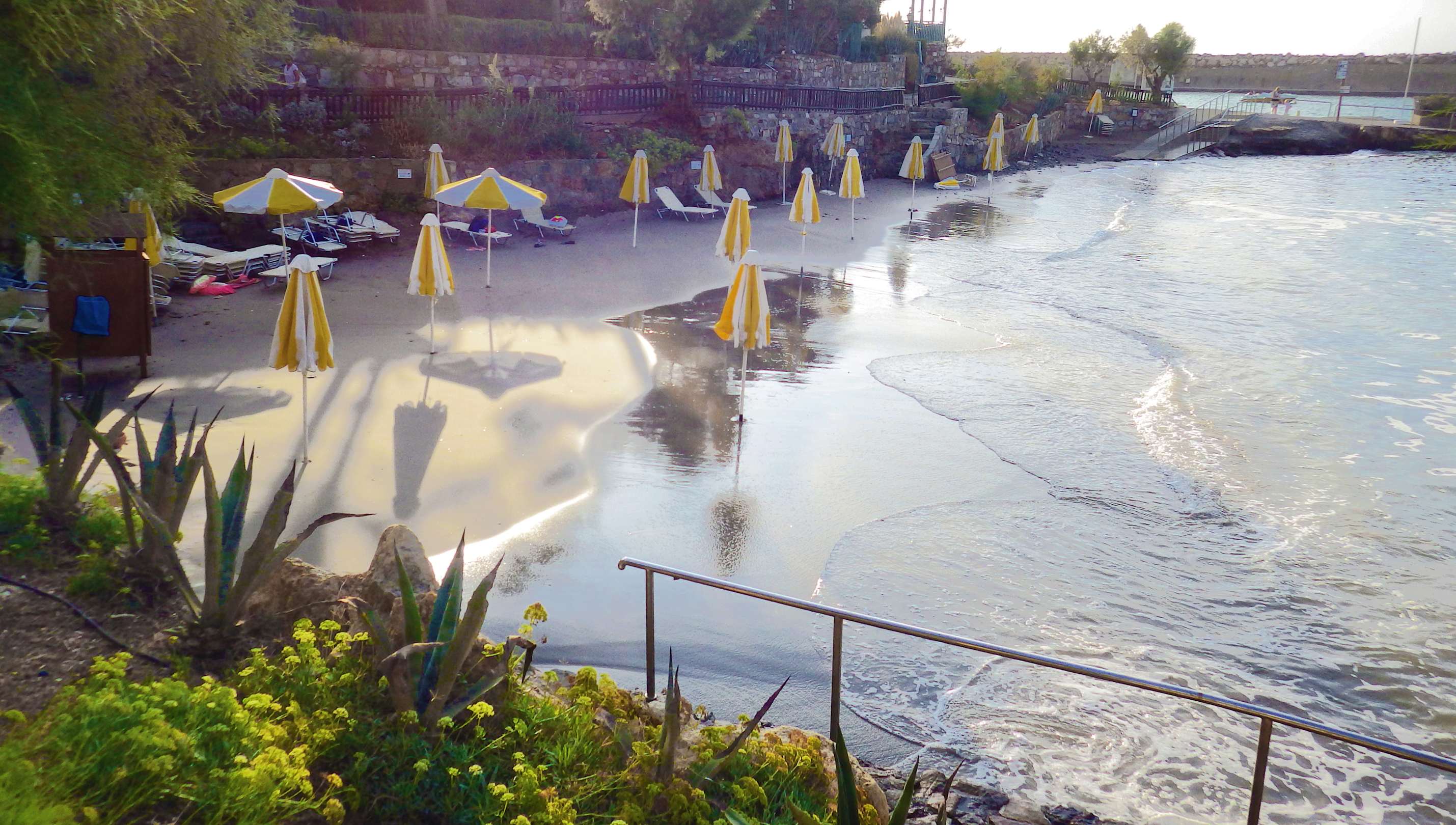 Hier der erste Strand, klein aber dafür mit Sand. Während der Corona-Zeit wurde keine Gebühr für Liegen eingehoben - das sollte so bleiben! Bei einem hoteleigenen Strand ist das anderswo nicht üblich!
