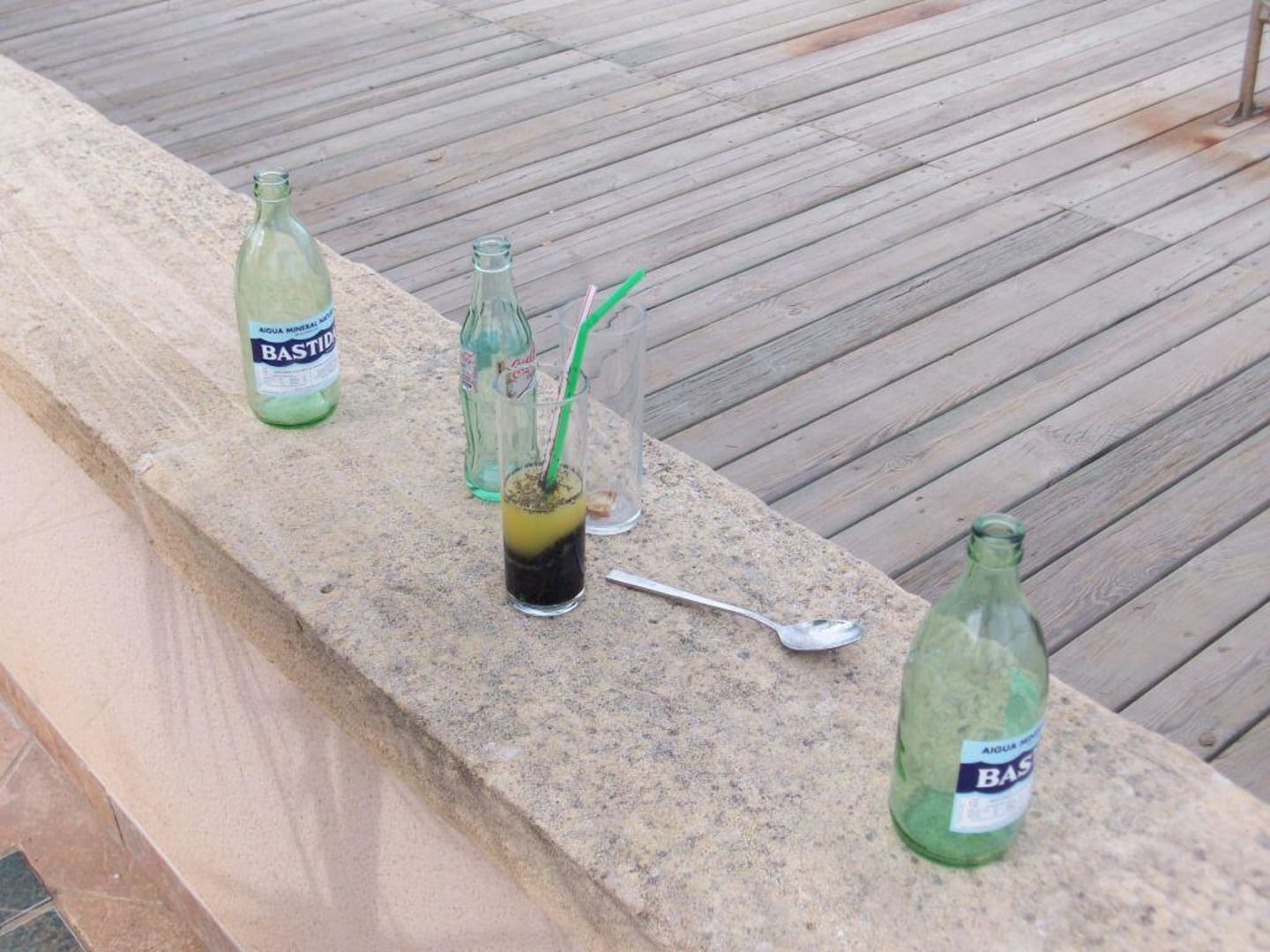 Flaschen und Getränke die vom Vortag nicht weggeräumt wurden und schon stark von Ameisen befallen wurden