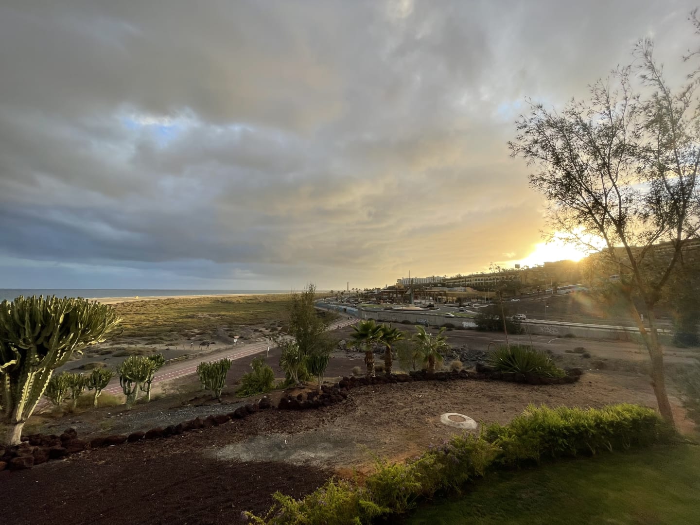 ZimmerAusblick vom Zimmer mit seitlichen Meerblick. Sonnenuntergang