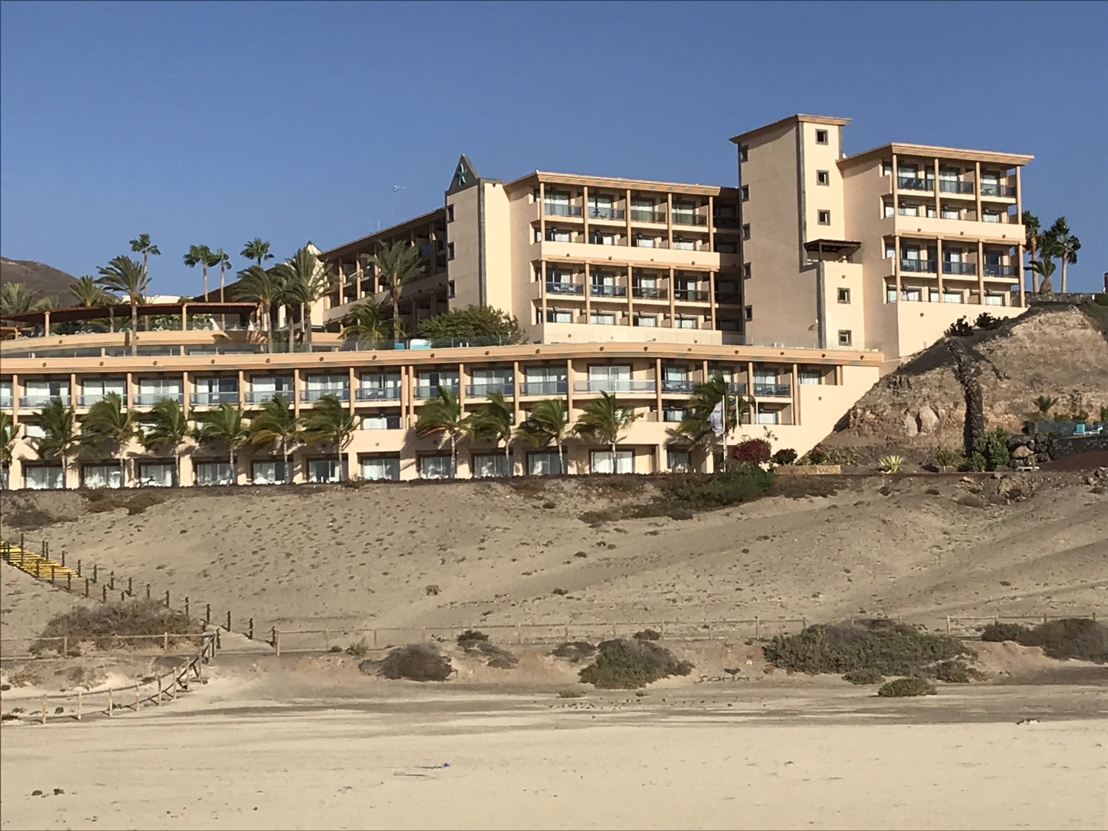 Blick vom Strand auf das Hotel