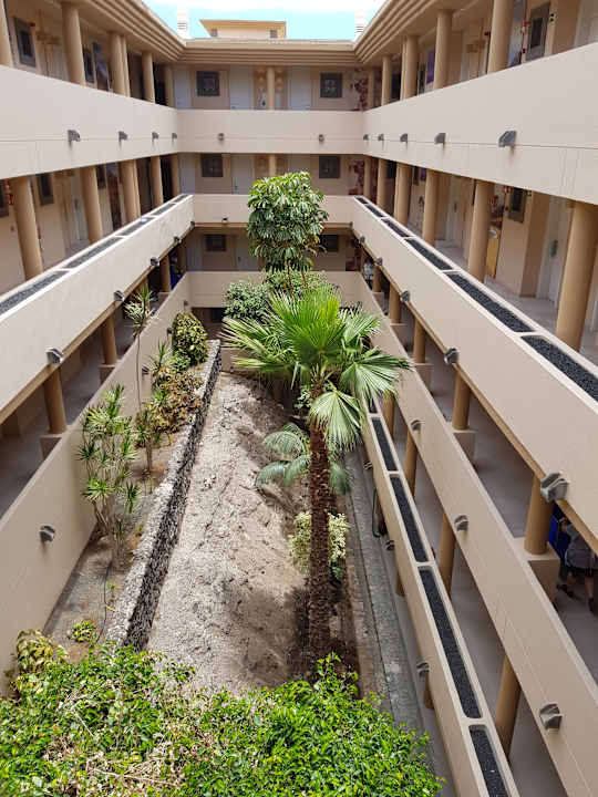 Die einzelnen Etagen mit Zugang zu den Zimmern. Sehr schön der begrünte Innenhof