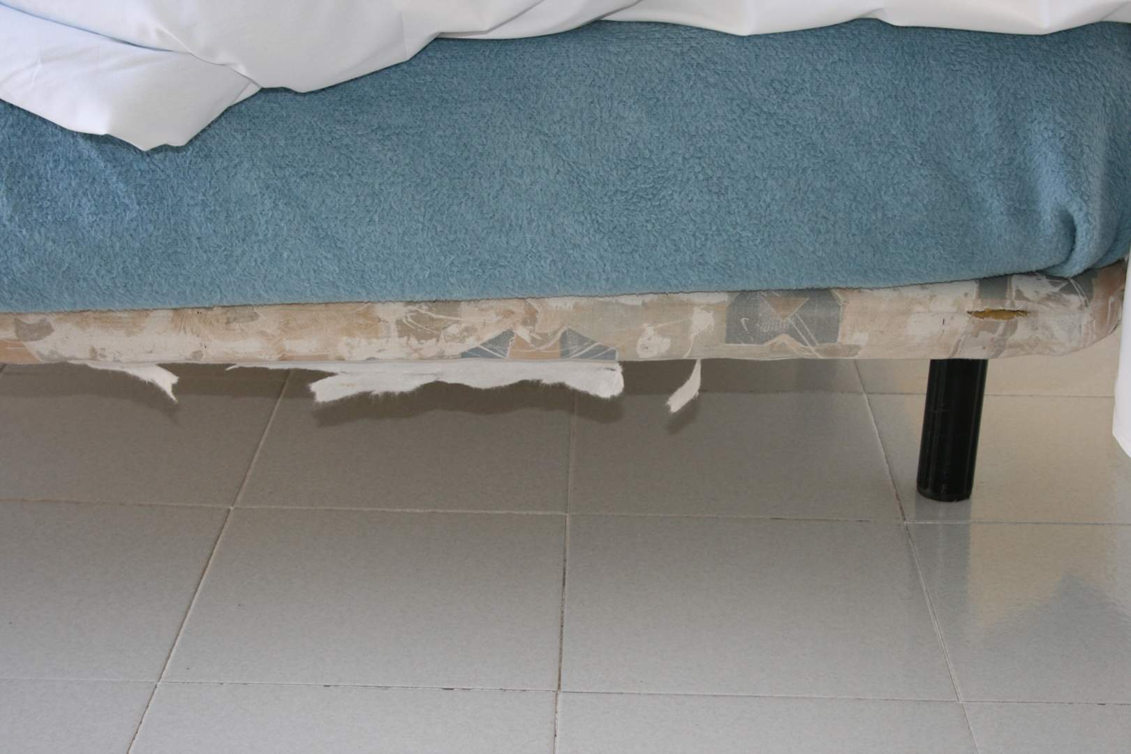 Nicht traumhaft: kaputtes Bett / Federn im Rücken