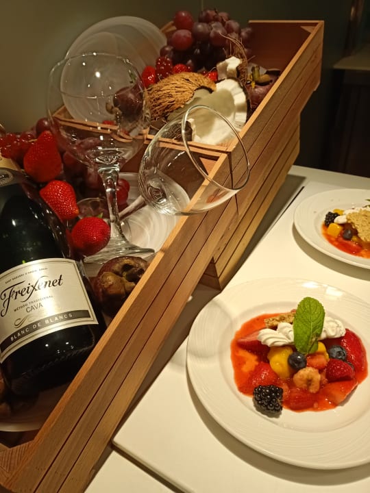 Frisch zubereiteter Nachtisch beim Show Cooking