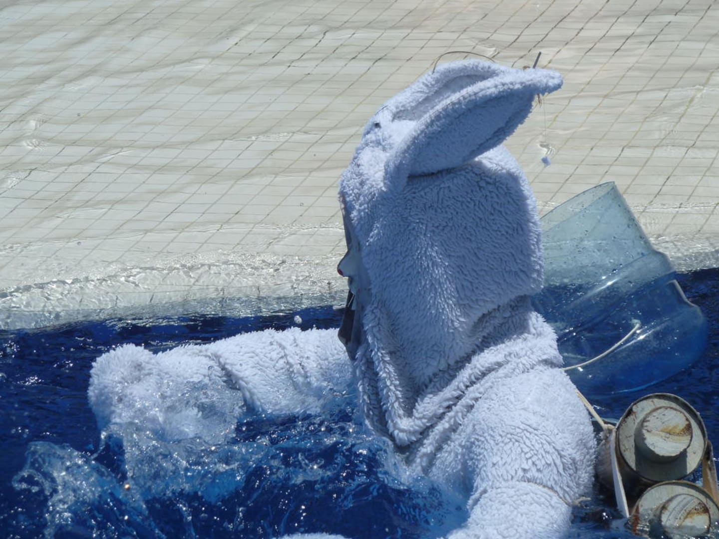 Das "Duracell-Häschen"es läuft den ganzen Tag durch die Anlage, über Liegen, gegen Schirme, durch den Pool usw.