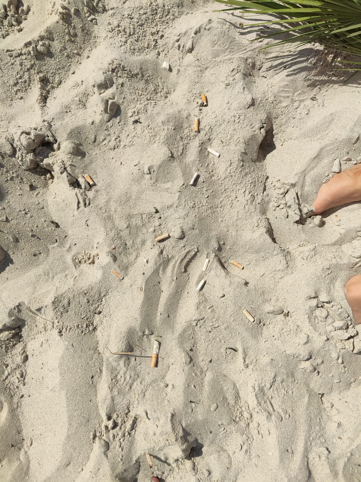 ganzer Strand voll mit Zigaretten woran nicht nur die Gäste verantwortlich sind sondern auch die Security die eine Nacht der anderen Rauch und sie dan im Sand vergraben