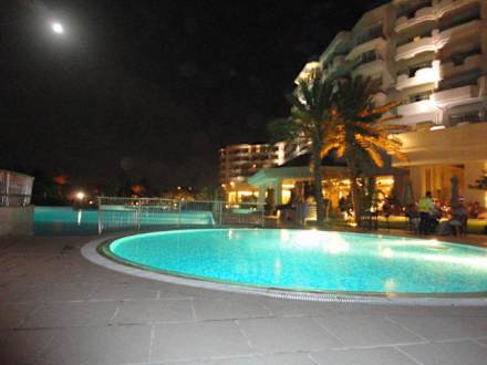Poolbereich am Abend