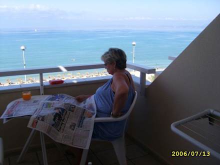 Zeitung lesen auf den Balkon